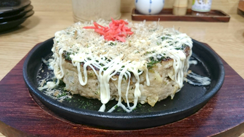 地産地消、ここでしか食べられない「かどやき」と「かどピザ」は加賀レンコンを贅沢に使用した新食感のお好み焼きで大人気です♪